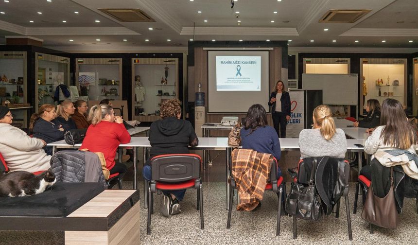 İzmir Büyükşehir Belediyesi, 30 ilçede Rahim Ağzı Kanseri Farkındalık Ayı kapsamında eğitimler düzenliyor. Eğitimlere katılan yurttaşlar, erken teşhis ve düzenli tarama ile önlenebilir bir hastalık olan rahim ağzı kanserine karşı bilinçleniyor.
