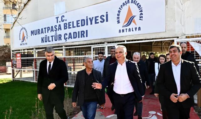 Antalya Muratpaşa Belediye Başkanı Ümit Uysal, Yeşildere Mahallesi'nde yenilenen kültür çadırını inceleyerek kentsel dönüşüm ve sosyal çalışmalar hakkında açıklamalarda bulundu.