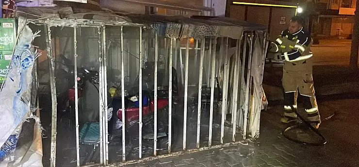 İş yeri önünde şarja bırakılan üç elektrikli bisiklet gece yarısı çıkan yangında kullanılamaz hale geldi.