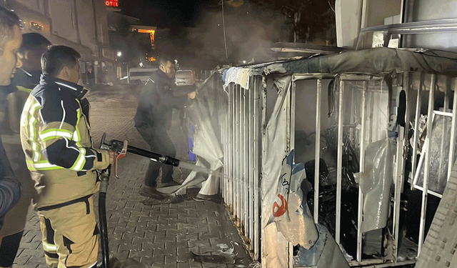 Yangın, gece saat 01.20 sıralarında Yenimahalle Zeytin Dalı Bulvarı yakınlarında bir iş yerinin önünde meydana geldi.