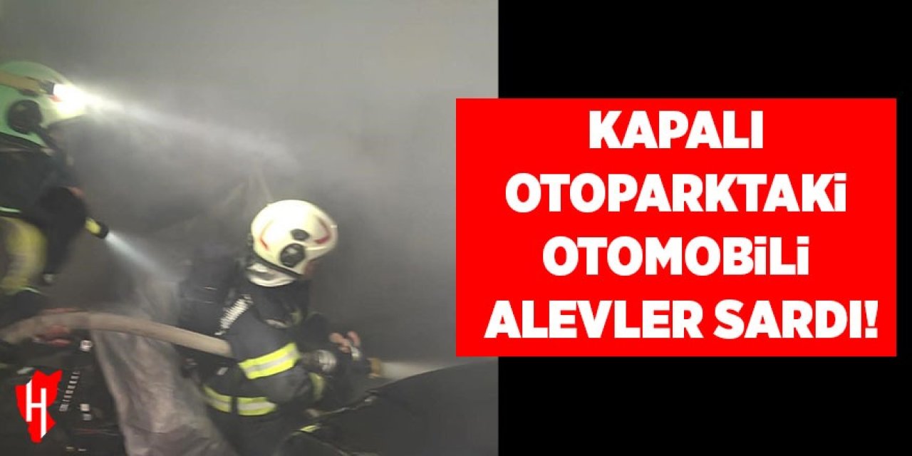 Kapalı bir otoparkta park halindeki otomobilde çıkan yangın paniğe neden oldu.