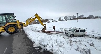 Kars'ta buzlanan yolda sürücüsünün direksiyon hakimiyetini kaybettiği hafif ticari araç, yoldan çıkarak şarampole düştü.