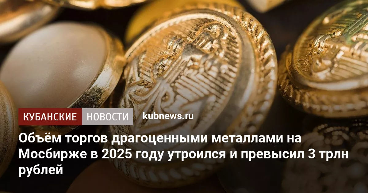 В 2025 году объем торгов драгоценными металлами на Мосбирже превысил три триллиона рублей. Об этом сообщает пресс-служба торговой площадки.