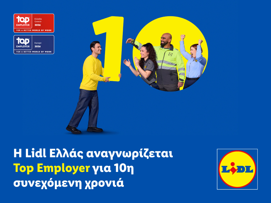 Δέκα συνεχόμενες χρονιές Top Employer για τη Lidl Ελλάς. Μια διαδρομή που χτίστηκε από συνέπεια, ομαδική προσπάθεια και καθημερινές επιλογές που έχουν στο επίκεντρο τον άνθρωπο.
