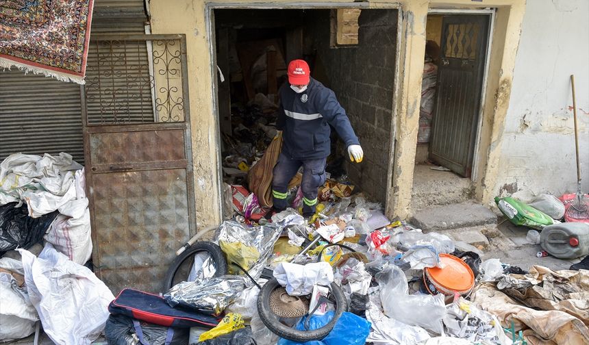 ADANA (AA) - Adana'da belediye ekiplerince polis eşliğinde temizlik çalışması yapılan evden iki kamyon çöp çıkarıldı.