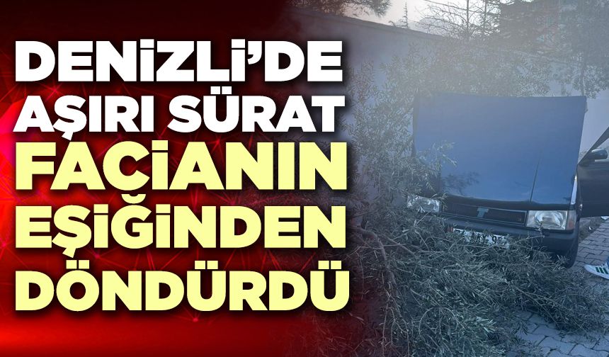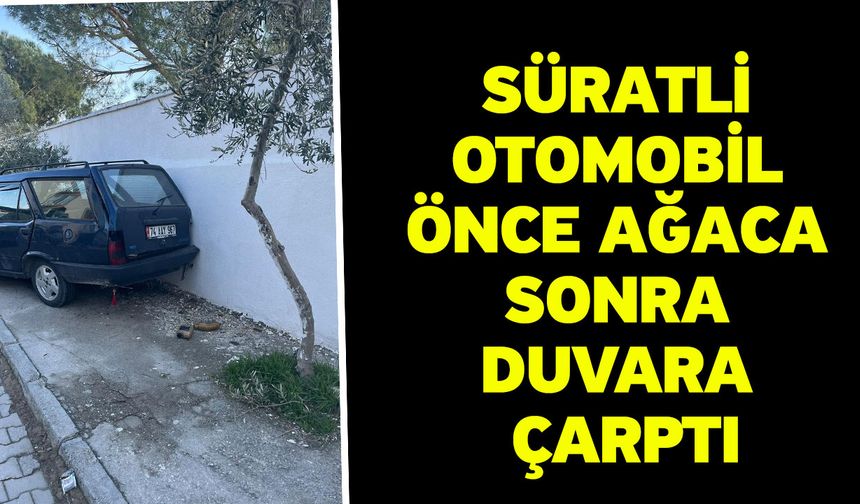 Denizli'de süratli otomobil duramayınca önce zeytin ağacına, ardından duvara çarparak durabildi.