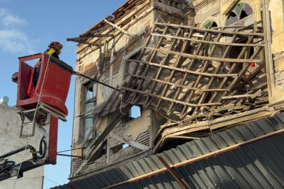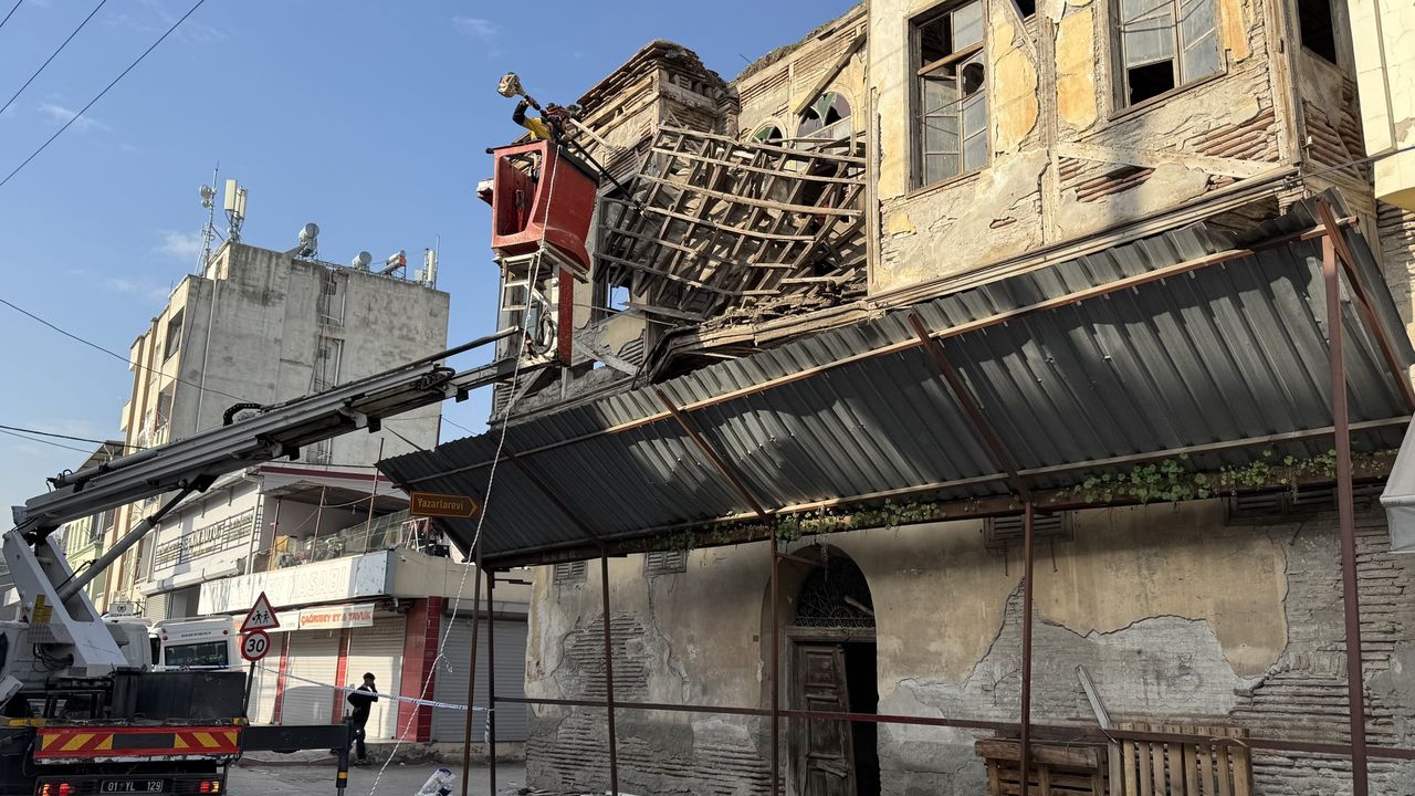 Seyhan'daki tarihi bir binanın çatısında kısmi çökme yaşandı, ekipler tahtaları keserek riski önledi.