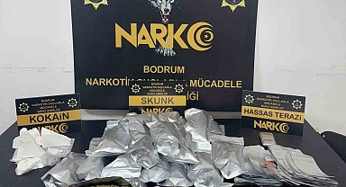 Muğla'nın Bodrum ilçesinde bir eve düzenlenen uyuşturucu operasyonunda ele geçirilen yüklü miktardaki...