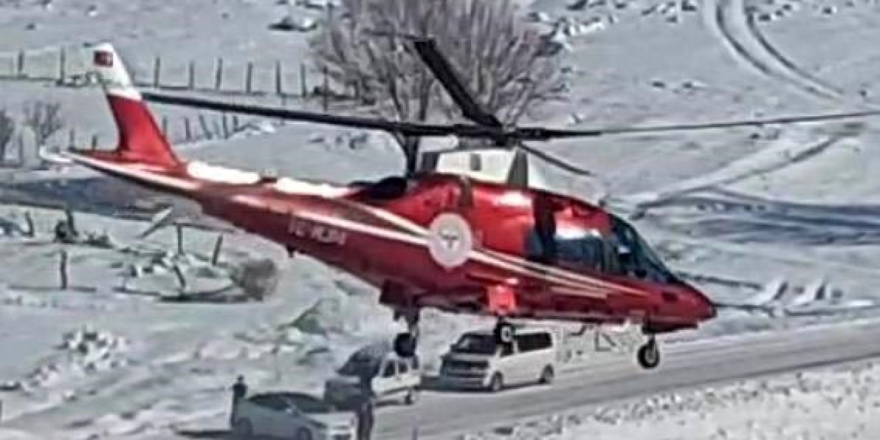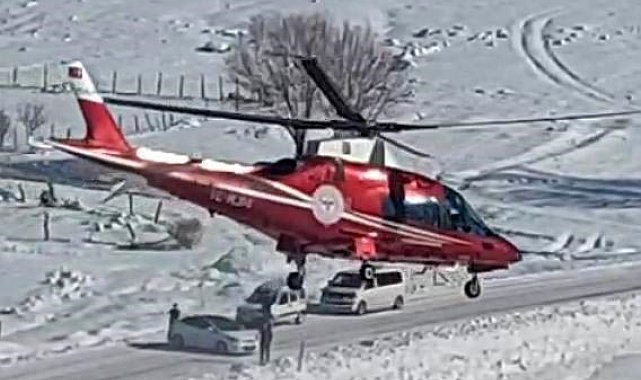 Kalp krizi geçiren vatandaş karlı yola inen ambulans helikopterle hastaneye kaldırıldı