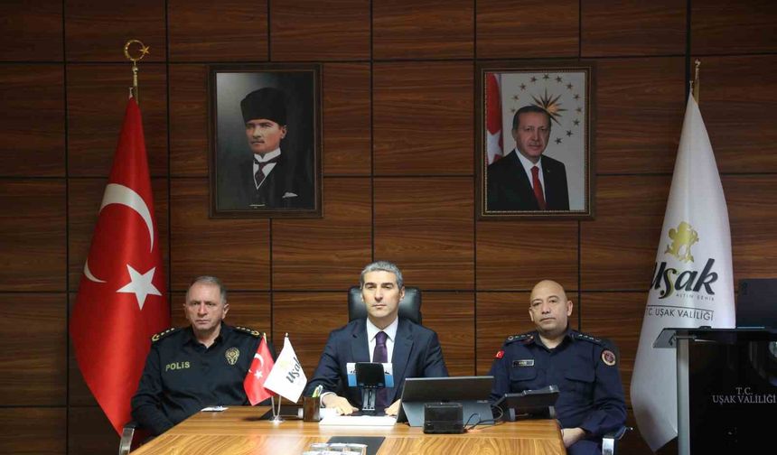 Uşak Valisi Naci Aktaş, Güvenlik ve Asayiş Bilgilendirme Toplantısı'nda, 1 Ocak-31 Aralık 2025 tarihleri arasındaki asayiş, terör, kaçakçılık ve organize suçlar, göçmen kaçakçılığı, siber suçlar ile trafik konularına ilişkin detaylı bilgiler verdi.