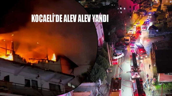 Kocaeli'de 2 katlı evin çatısında yangın çıktı. Alevler geceyi aydınlatırken, yangın itfaiye ekipleri tarafından söndürüldü.