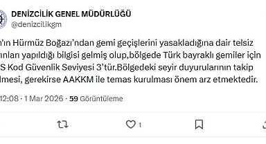 Denizcilik Genel Müdürlüğü, İran’ın Hürmüz Boğazı’ndan gemi geçişlerini yasakladığına dair telsiz yayınları yapıldığı bilgisinin alındığını açıkladı. Bölgede Türkiye bayraklı gemiler için ISPS Kod Güvenlik Seviyesi’nin 3 olduğu bildirildi.