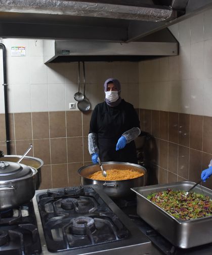 Gümüşhane Belediyesi Otağ Tesisleri'ndeki yemekhanede hazırlanan yemeklerin dağıtımını da belediye ekipleri...