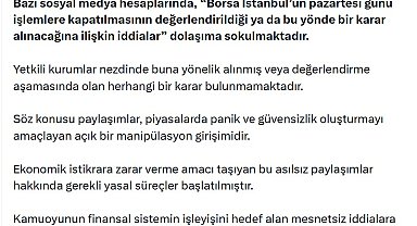 92. "Borsa İstanbul Kapatılacak" iddialarına ilişkin açıklama