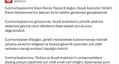 İletişim Başkanı Burhanettin Duran’ın açıklamasına göre, görüşmede Cumhurbaşkanı Erdoğan, Suudi Arabistan’a yönelik...