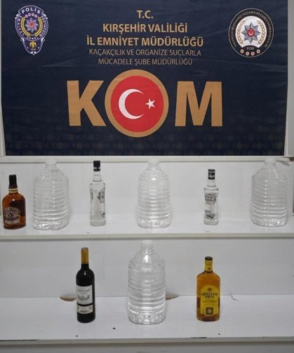 Kırşehir'de polis ekipleri tarafından bir ikamette yapılan aramada 20 litre etil alkol ile çeşitli miktarlarda el yapımı içki ele geçirildi.