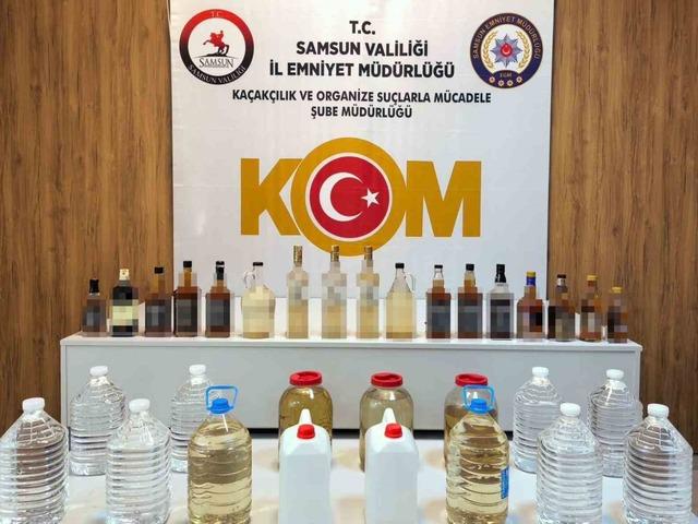 Samsun'un İlkadım ilçesinde polis ekiplerince düzenlenen operasyonda, sahte içki yapımında kullanıldığı değerlendirilen 70 litre etil alkol ele geçirildi.