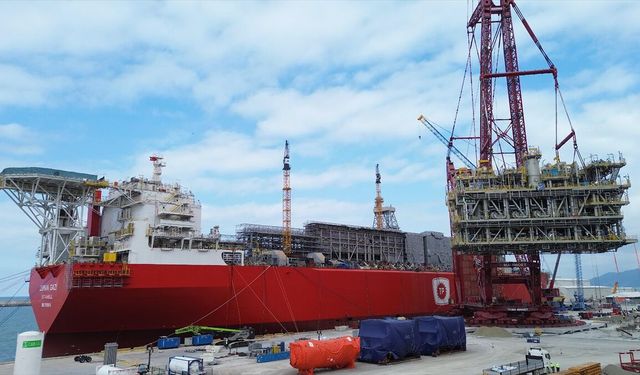Türkiye'nin ilk yüzer doğal gaz üretim platformu (FPU) Osman Gazi'ye, doğal gaz akışını kesintisiz hale getirecek 2 bin 500 tonluk MEG modülü entegre edildi.