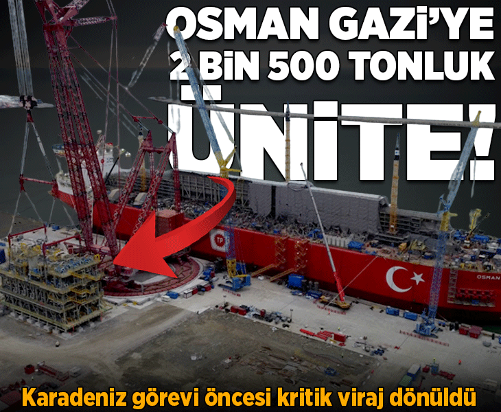 Türkiye'nin ilk yüzer üretim platformu Osman Gazi'ye, doğal gaz akışını kesintisiz hale getirecek 2 bin 500 tonluk bir ana modül entegre edildi.