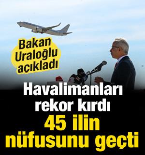 ULAŞTIRMA ve Altyapı Bakanı Abdulkadir Uraloğlu, "Şubat ayında toplam 15 milyon 92 bin 119 yolcu, hava yolu ile seyahat etti. Sadece bir ayda hava yolu ile seyahat eden yolcu sayısı 45 ilimizin toplam nüfusunu aştı" dedi.