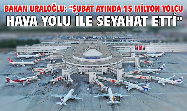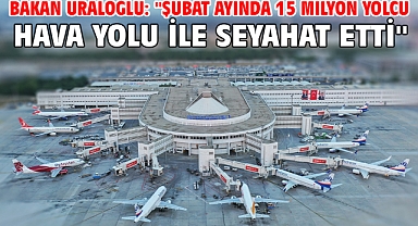Ulaştırma ve Altyapı Bakanı Abdulkadir Uraloğlu, "Şubat ayında toplam 15 milyon 92 bin 119 yolcu, hava yolu ile seyahat etti. Sadece 1 ayda hava yolu ile seyahat eden yolcu sayısı 45 ilimizin toplam nüfusunu aştı" dedi.