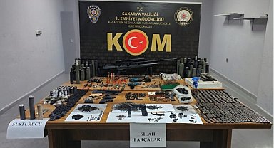 Sakarya’nın Hendek ilçesinde düzenlenen operasyonda silah bakım ve tamiri için kullanılan imalathanede çok sayıda silah parçası ele geçirildi.