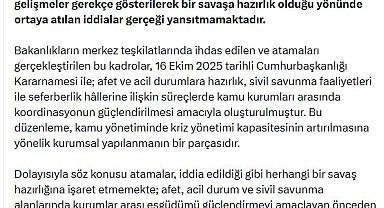 Bazı sosyal medya hesaplarında, bakanlıklara yapılan Acil Durumlar ve Savunma Planlaması Dairesi Başkanı atamalarının, bölgesel gelişmeler gerekçe gösterilerek bir savaşa hazırlık olduğu yönünde ortaya atılan iddialar yalanlandı.
