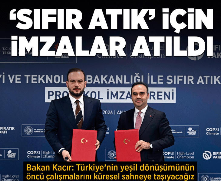 Sanayi ve Teknoloji Bakanlığı ile Sıfır Atık Vakfı arasında, sıfır atık bilincinin yaygınlaştırılması ve sanayide yeşil dönüşümün hızlandırılması amacıyla işbirliği protokolü imzalandı.