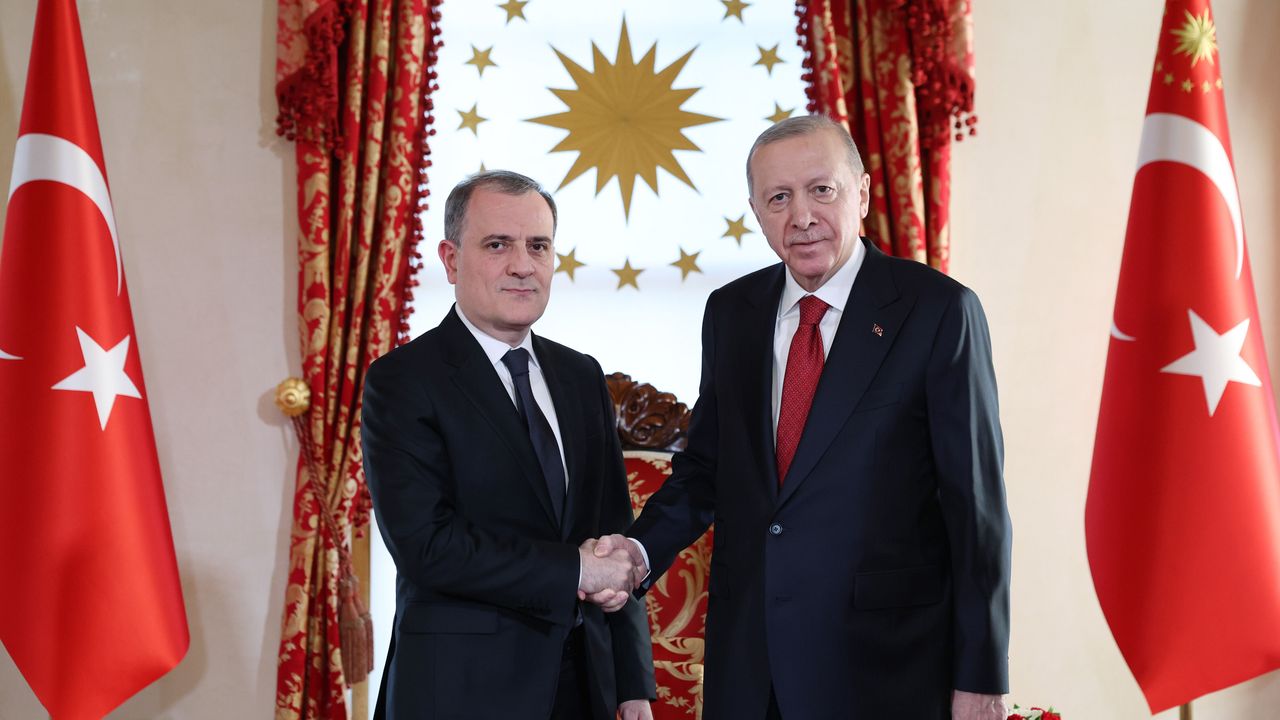 Cumhurbaşkanı Recep Tayyip Erdoğan, İstanbul'da düzenlenen Türk Devletleri Teşkilatı (TDT) Gayriresmi Toplantısı kapsamında Azerbaycan Dışişleri Bakanı Ceyhun Bayramov'u kabul etti.