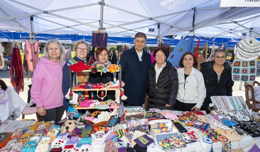 İzmir Büyükşehir Belediye Başkanı Cemil Tugay, Kültürpark'taki 8 Mart etkinliğinde kadın üreticilerle buluştu. Atatürk'ün sözleriyle kadın emeğine vurgu yapan Tugay, talepleri dinledi.