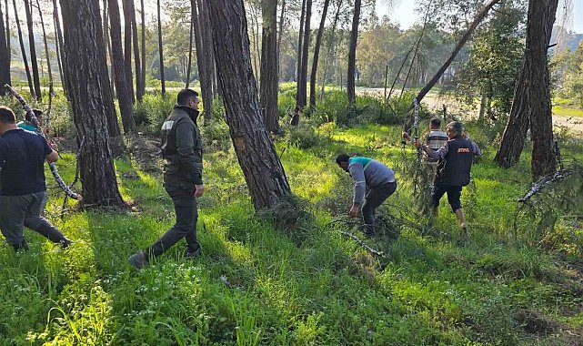 Marmaris'te kesilen basralı dallar, arıcıların kullanımı için Karaca Mahallesi'ndeki ormanlık alana taşındı.