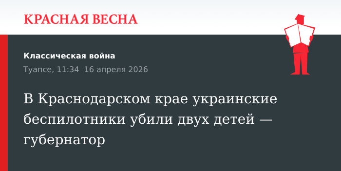 Губернатор Краснодарского края Вениамин Кондратьев сообщил о гибели двух детей в результате атаки беспилотников на жилые дома в Туапсе. Трагедия произошла ночью 16 апреля.,...