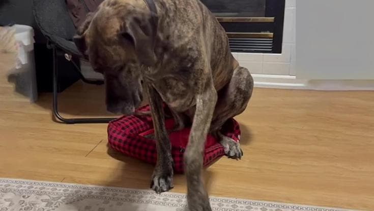 Un cane Alano enorme, un letto troppo piccolo e un Corgi...
