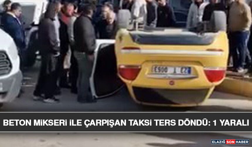 Elazığ'da beton mikseri ile çarpışan ticari taksi ters döndü. Kazada, 1 kişi hafif yaralandı.
