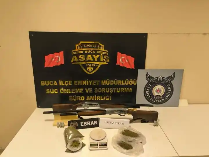 İzmir’in Buca ilçesinde polis ekiplerince uyuşturucu madde ticaretine yönelik gerçekleştirilen operasyonda yüklü miktarda uyuşturucu madde ve silah ele geçirildi. Olayla ilgili 1 kişi gözaltına alındı.