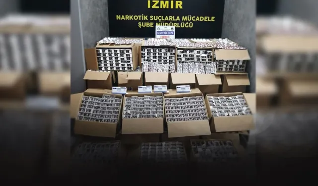 İZMİR'in Konak ilçesinde polisin düzenlediği operasyonda 104 bin 40 adet uyuşturucu sentetik ecza ele geçirildi.