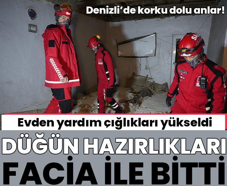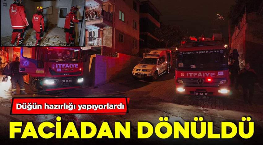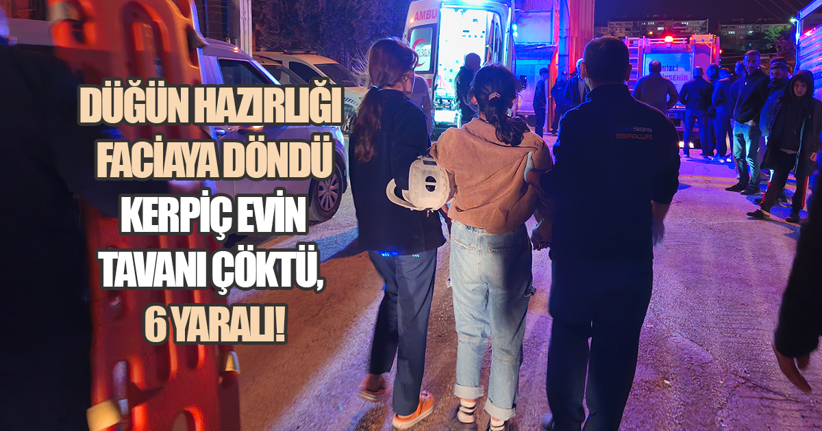 Düğün hazırlığı yapılan Denizli’deki müstakil bir evin tavanı çöktü, moloz altında kalan 6 kişiden 5’i taburcu edildi. Ev mühürlenirken, olayla ilgili soruşturma başlatıldı.