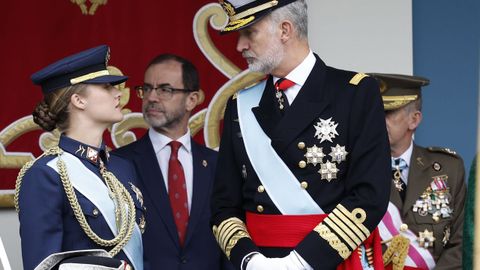 Los reyes, acompañados de Leonor y Sofía, ha presidido el desfile con ausencia de Abascal en la tribuna y abucheos a Pedro Sánchez