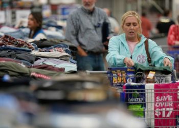 People shop for clothing at a Sam's Club, Wednesday, Sept. 24, 2025, in Bentonville, Ark. (AP Photo/Charlie Riedel)