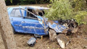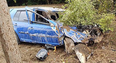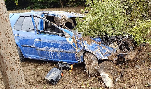 15. Kaygan yolda kontrolden çıkan otomobil hurdaya döndü