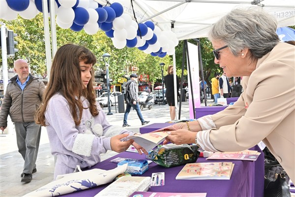 Manisa Büyükşehir Belediyesi, 11 Ekim Dünya Kız Çocukları Günü’nde meydanda kurduğu stantla ailelere ve öğrencilere broşürler ve hediyeler dağıttı.