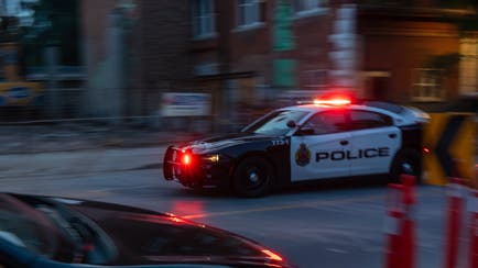 Motion of a Police Car driving by with red lights flashing davidfillion via Getty Images