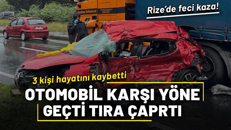 RİZE'de kontrolden çıkan otomobilin karşı yöne geçip TIR'a çarptığı kazada 3 kişi hayatını kaybetti.
