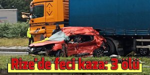 Rize'nin Çayeli ilçesi Limanköy mevkiinde meydana gelen trafik kazasında 3 kişi yaşamını yitirdi. Bursa plakalı bir otomobilin karşı şeride geçerek tırla çarpışması sonucu araç hurdaya döndü.
