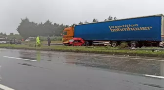 Kontrolden çıkan otomobilin karşı yöne geçip TIR'a çarptığı kazada 3 kişi hayatını kaybetti.