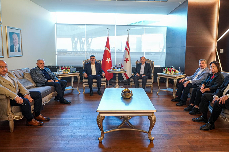 Cumhurbaşkanı Ersin Tatar, Türkiye Cumhurbaşkanı Yardımcısı Cevdet Yılmaz, Başbakanı Ünal Üstel, Başbakan Yardımcısı Fikri Ataoğluve Türkiye eski Başbakanı Binali Yıldırım ile Ercan Havalimanı’nda bir araya geldi.