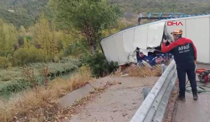 Sivas'ın Koyulhisar ilçesinde devrilen sebze yüklü TIR'ın şoförü Y.Y. yaralandı. Y.Y. sıkıştığı yerden AFAD ve itfaiye ekiplerinin yaklaşık 2 saatlik çalışmasıyla kurtarıldı.
