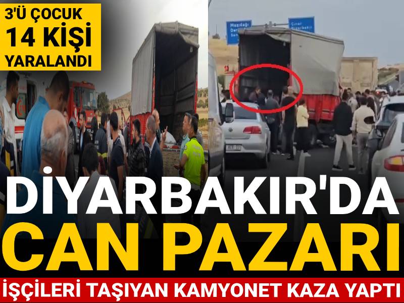 Diyarbakır-Mardin karayolunda işçileri taşıyan kamyonet ile kamyonun çarpıştığı kazada 3’ü çocuk 14 kişi yaralandı. Kazayla ilgili inceleme başlatıldı.