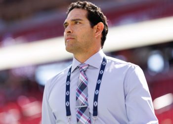 Mark Sanchez former NFL quarterback on the field during a game between the San Francisco 49ers and the Los Angeles Rams at SoFi Stadium on September 17, 2023 in Inglewood, California. (Photo by Ric Tapia/Getty Images)