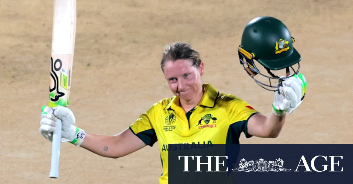 Australia’s grand old guard of Alyssa Healy and Ellyse Perry have seen the champions across the line under the lights at Visakhapatnam in a dramatic record-breaking chase that toppled hosts India at the World Cup.
